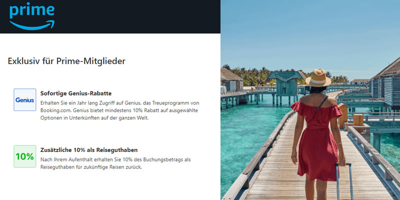 Wer Amazon Prime Kunde ist und häufiger über Booking.com ein Hotel reserviert, sollte die Aktion auf alle Fälle mitnehmen. Ihr bekommt nach einer kurzen Anmeldung 10% Booking.com Cashback auf eure Hotelbuchung. Das Cashback gibt es als Reiseguthaben auf euer Booking.com Konto und ihr könnt das Guthaben bei der nächsten Buchung über Booking.com einlösen. Planmäßig läuft die Aktion zunächst bis zum 01.11.2023, wobei sie vielleicht verlängert wird. Das Angebot gilt nur für Amazon Prime Kunden aus Deutschland und Österreich.