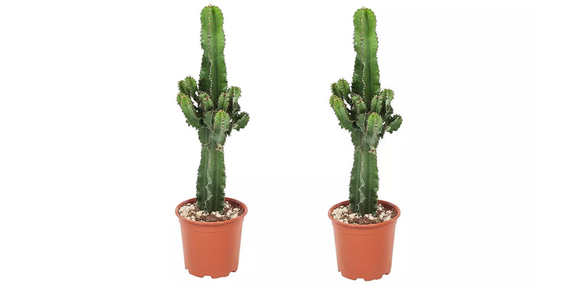 Bei ihrer Zustellung wird die Pflanze zwischen 60 und 70 cm hoch sein. In jeder Lieferung ist außerdem ein 17 cm großer Topf enthalten. Menschen mit knabberfreudigen Haustieren empfehlen wir diese Pflanze allerdings nicht, da der Milchsaft des Kaktus giftig ist.