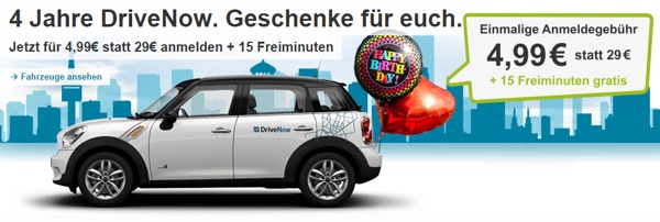 DriveNow Geburtstagsaktion: Anmeldung für nur 4,99€ + 15 Freiminuten