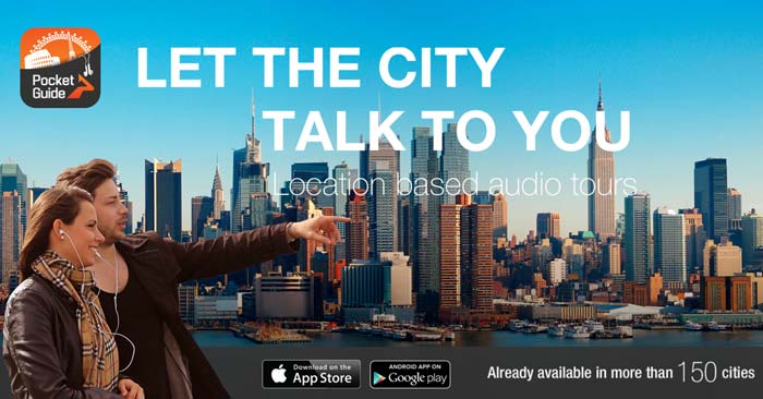 PocketGuide gibt es als App für Android und iOS. Mit PocketGuide können Sie sich Infos über wichtige Sehenswürdigkeiten in der Nähe geben lassen oder komplett geführte Audiotouren machen. Während der Tour erfahren Sie dann alles Wissenswerte zu den Dingen, die Sie unterwegs sehen können. Pro Stadt gibt es diverse Touren in der App, die unterschiedlich viel Guthaben kosten. Sie können auch Städte-Packete kaufen, die dann zum Beispiel 10 verschiedene Touren beinhalten.