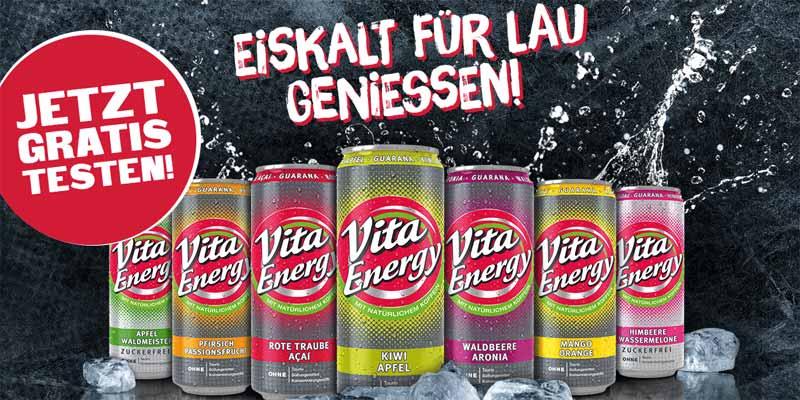 Den Energydrink Vita Energy gibt es seit neuestem in vielen verschiedenen Sorten. Ihr könnt ihn in fast allen Getränke- und Supermärkten kaufen, kostenlos probieren und euch eine eigene Meinung über den Drink machen. Folgende Sorten könnt ihr im Rahmen der Vita Energy Cashback Aktion gratis testen: